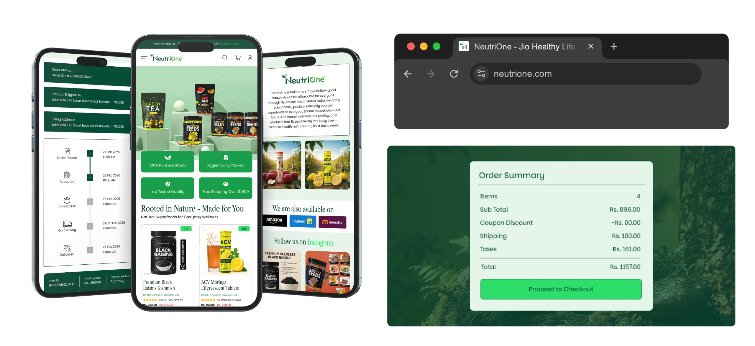 NeutriOne is a growing superfood brand in India. A simple goal — help people eat better. This project stripped everything back to what matters: clarity, trust, and ease. Users find the right product for their health goal — quickly, confidently, without distraction. Nothing extra. Just what you need.